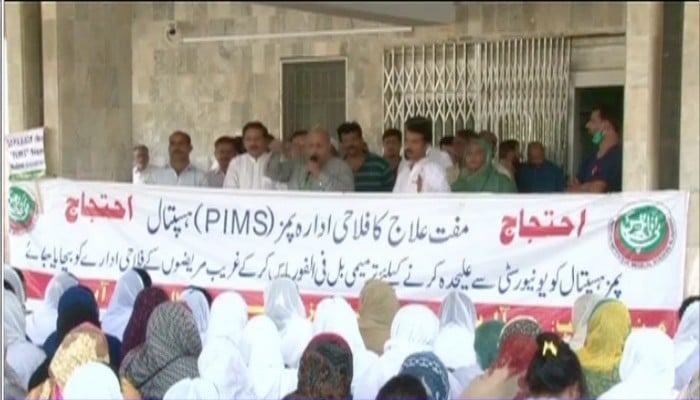 One of the protesters said that the “PIMS treats thousands for patients for free. However, it’s dependence on the university will give university administration the right to decide who will be given treatment.”
