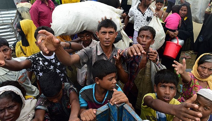 COX'S BAZAAR: Several thousand Rohingya fleeing violence in Myanmar surged into Bangladesh Monday, officials said, with reports of children dying from hunger, exhaustion and fever among the latest wave of refugees.