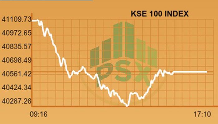 KARACHI: A bearish trend at the Pakistan Stock Exchange was witnessed as the KSE-100 index closed below 41,000 points on Tuesday after witnessing a negative change of 1.19 per cent.