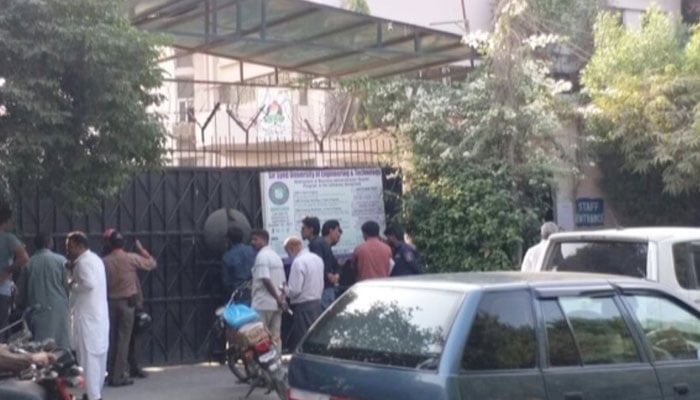 KARACHI: Students of Sir Syed University of Engineering and Technology on Wednesday blocked entry and exit doors of the campus following a dispute with administration over supplementary examinations.