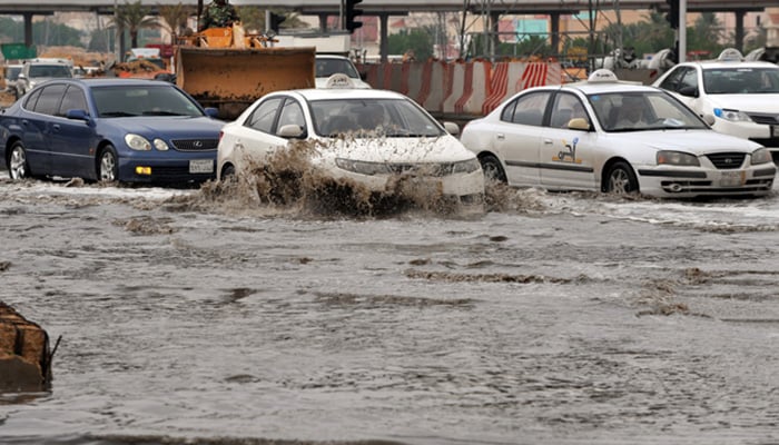 Dozens of people were plucked from vehicles engulfed by floodwaters, Saudi civil defence authorities said, with intermittent heavy rainfall expected to last at least until Wednesday.