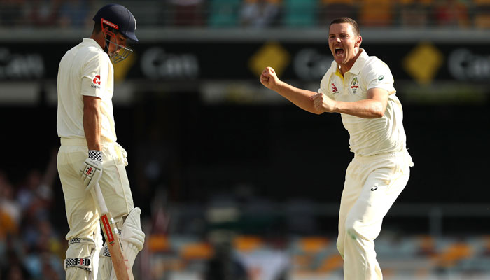 BRISBANE: Steve Smith produced a defiant unconquered century and Josh Hazlewood claimed two wickets to leave England reeling as Australia cracked open the first Ashes Test at the Gabba on Saturday.