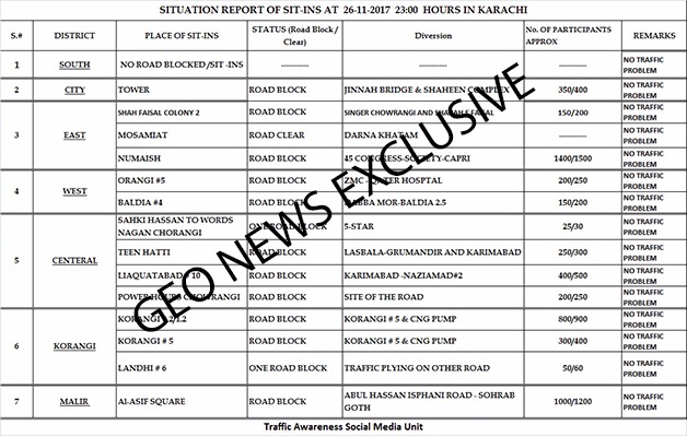 According to reports, protesters staged sit-ins at Numaish Chowrangi, Tower, Al-Asif Square, Orangi, Landhi, Jauhar Chowrangi, Punjab Chowrangi, and Hub River Road. They had also gathered at Nagan Chowrangi and Mausamiat earlier in the day, and blocked roads leading to traffic difficulties for the residents.