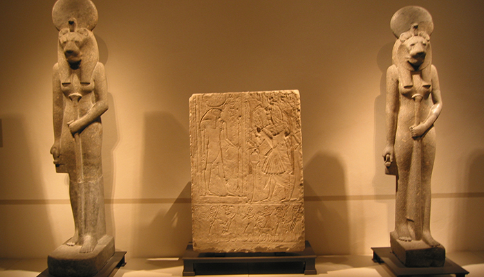 Sekhmet had the body of a woman and the head of a fierce lioness, with a headpiece featuring the sun disk and was one of the goddesses known as Eyes of Ra, the sun god.