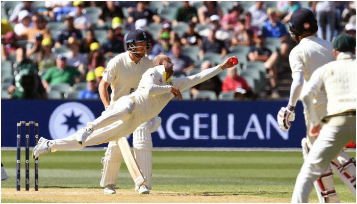 Moeen chipped to the left of Lyon, who flung himself across the pitch in a split second reaction to take the catch.