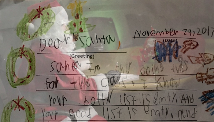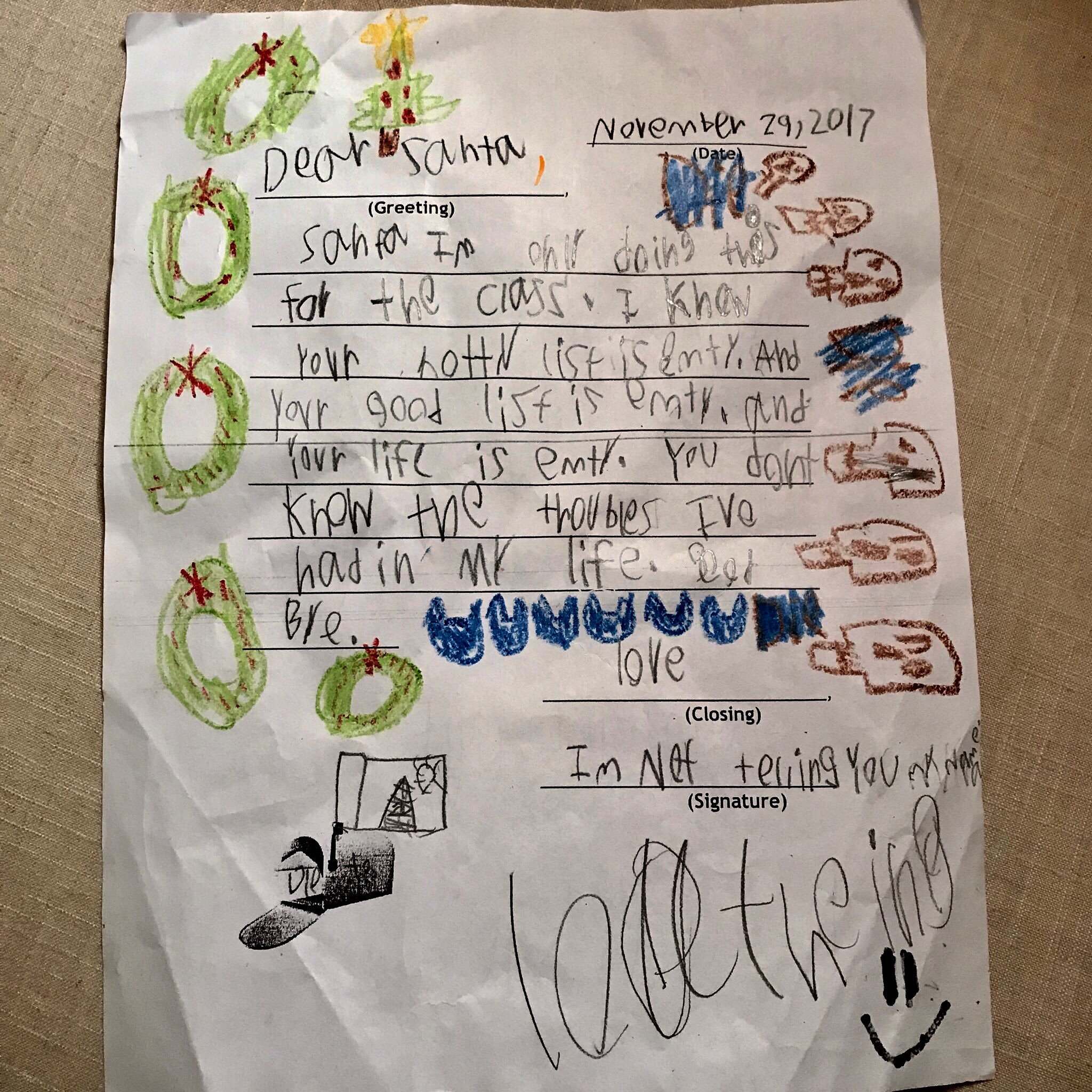But then her younger son was asked to write a letter to Santa at school. “So he did,” she wrote on a Twitter post accompanying a photo of the hand-written letter.