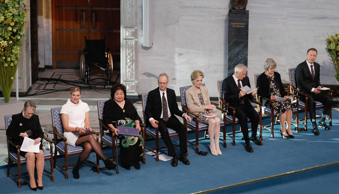 At a separate ceremony in Stockholm on Sunday, Sweden's King Carl XVI Gustaf handed over the Nobel prizes in literature, physics, chemistry, medicine, and economics.
