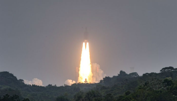 An Ariane 5 rocket blasts off from the Kourou Space Centre (Europe spaceport) carrying four Galileo satellites, on December 12, 2017, in Kourou, French Guiana. Photo: AFP
