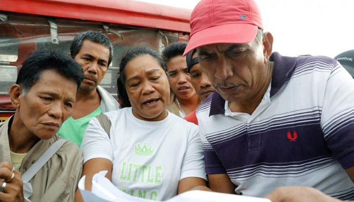 Filipinos look for their missing relatives on a list of survivors after a Philippine vessel capsized because of bad weather in Real, Quezon in the Philippines, December 22, 2017. Reuters