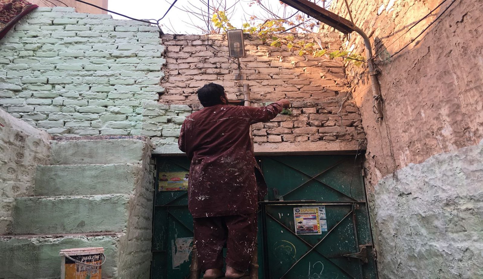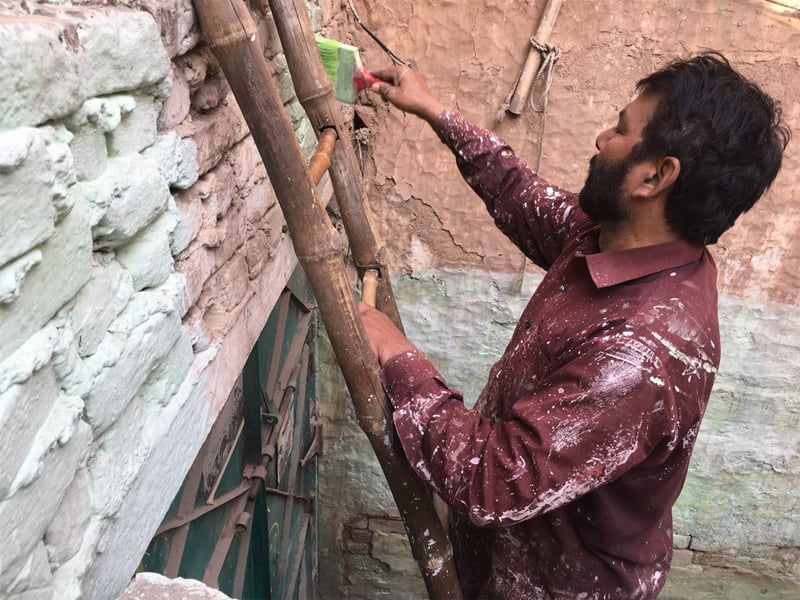 “This mosque you see in front, I painted it before Eid,” Ishaq said, pointing towards Masjid Ghous-e-Azam situated right outside the colony. “I did not charge anyone any money for painting the mosque.”