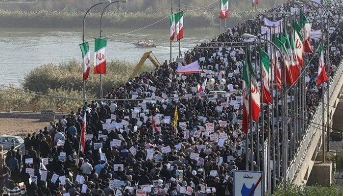 State television showed rallies and marches in more than a dozen cities with demonstrators waving Iranian flags and chanting slogans