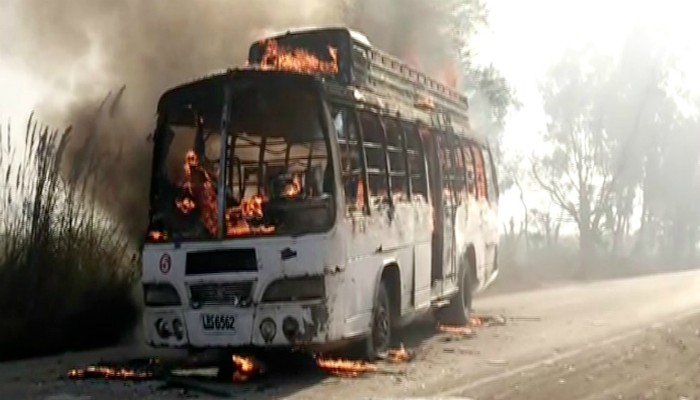 In a similar case in September in Faisalabad, school students turned into a violent mob after a public bus ran over and killed their classmate in a traffic accident on Sargodha Road.