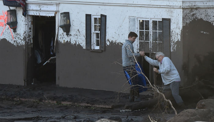 Heavy rains on Tuesday sent rivers of waist-high mud and debris flowing from the hills into Montecito and other towns in Santa Barbara County northwest of Los Angeles, which are still recovering from last month´s ferocious wildfires.