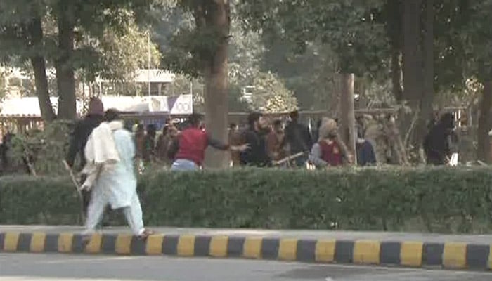 A student group was celebrating their cultural day outside the Faisal Auditorium when a rival student group arrived and began chanting slogans against them which led to the clash.