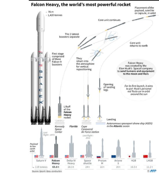 Experts said the launch would likely catch the eye of the US space agency NASA, which may consider using the Falcon Heavy as a way to fast-track its plans to reach the Moon again for the first time since 1972.