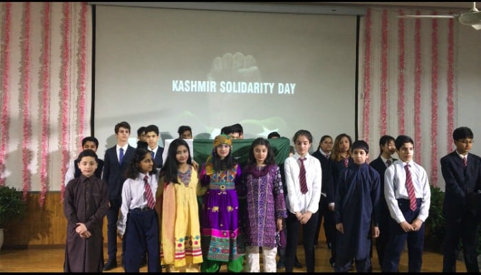 The event comprised of speeches and a stage play on the theme of Kashmir solidarity day.
