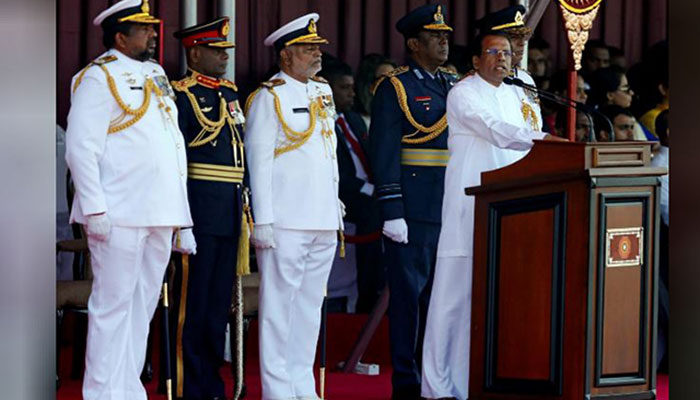 Sri Lanka's President Maithripala Sirisena addresses the nation during the Sri Lanka's 70th Independence day celebrations in Colombo, Sri Lanka February 4, 2018. REUTERS