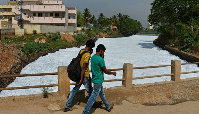 Many of those that remain are heavily polluted. Bellandur has become so toxic it spontaneously catches fire, and emits clouds of white froth so large authorities have had to build barriers to keep it from spilling onto the road.