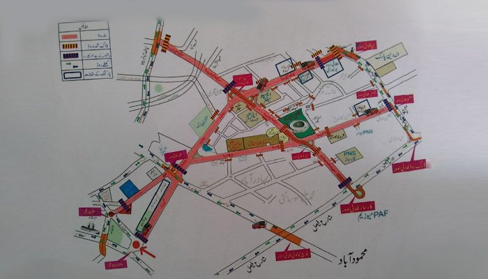 According to the plan, details of which were disclosed during a press conference earlier today by Sindh Rangers' Brigadier Shahid, the routes leading to and from Hassan Square and New Town would be closed for traffic on the March 25.