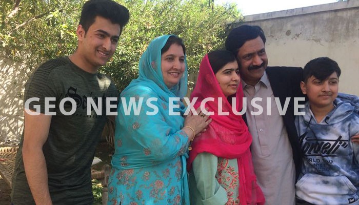 Malala with her family at her home in Mingora. Photo: Geo News