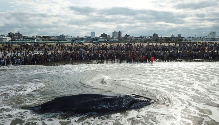 BUENOS AIRES: A whale that ran aground on a beach in Mar del Plata, Argentina´s biggest seaside resort, has died despite rescue efforts to get it back into the sea.