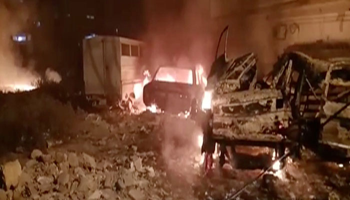 KARACHI: Five cars caught fire when a blaze erupted during the early hours of Sunday morning here at the backside of a police station in the city's Liaquatabad area, Geo News reported.