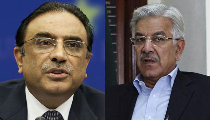 The PML-N quaid "told him to visit Islamabad and discuss the matter," Asif said, adding that Zardari took the names of the individuals who are currently his followers for they have their political limitations since "Zardari sahib has the franchise."