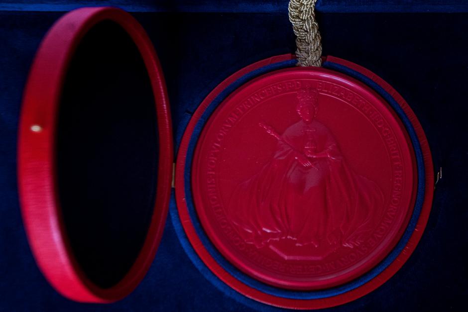 Reading “Now know ye”, the hand-written Instrument of Consent carries the Queen’s signature, “Elizabeth R” and is sealed with the Great Seal of the Realm which is attached to the foot of the document by woven cords.