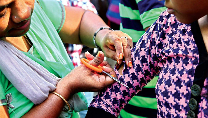 District education officer Lalan Prasad Singh said the sleeves were cut to protect the candidates but added that a probe has been launched to find who was responsible.