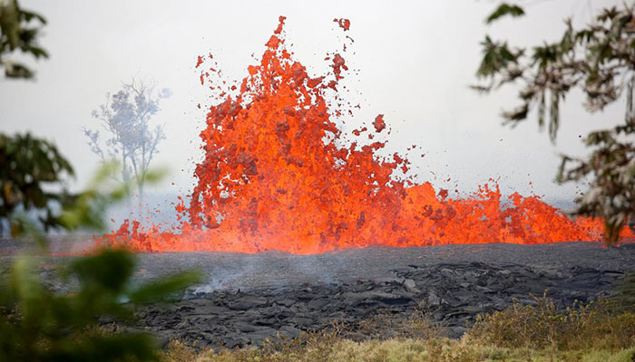 Fountains of bright orange lava were seen spouting at least 20-feet high, and spewing rivers of molten rock on Saturday.