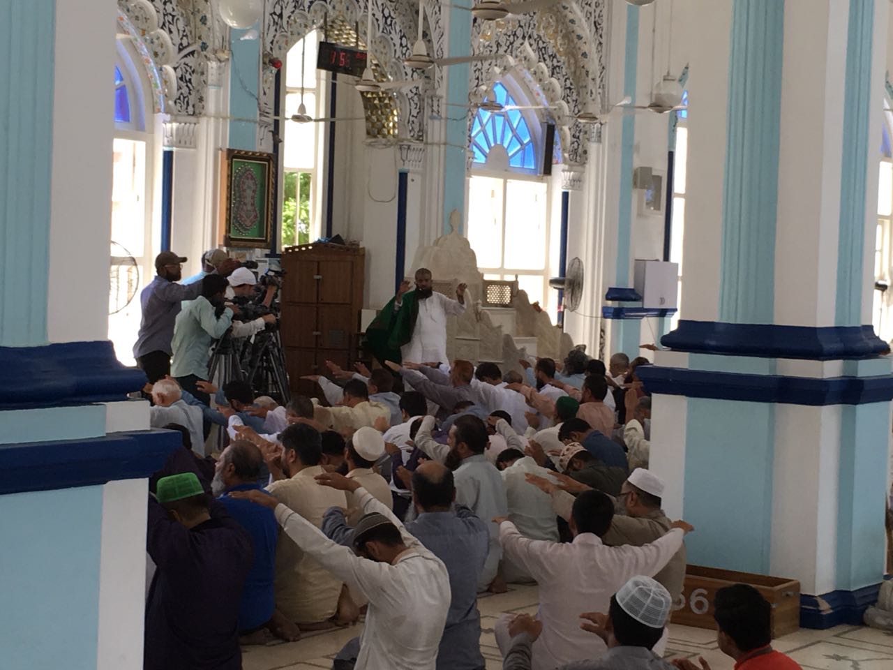 A mass prayer for rain was held on Saturday at the mosque which is one of the biggest and most prominent mosques in the city.