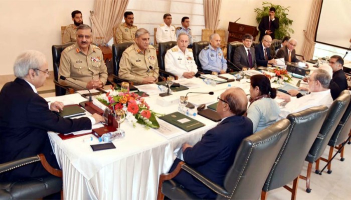 The meeting, chaired by interim Prime Minister Nasirul Mulk, was attended by top civil and military leadership.