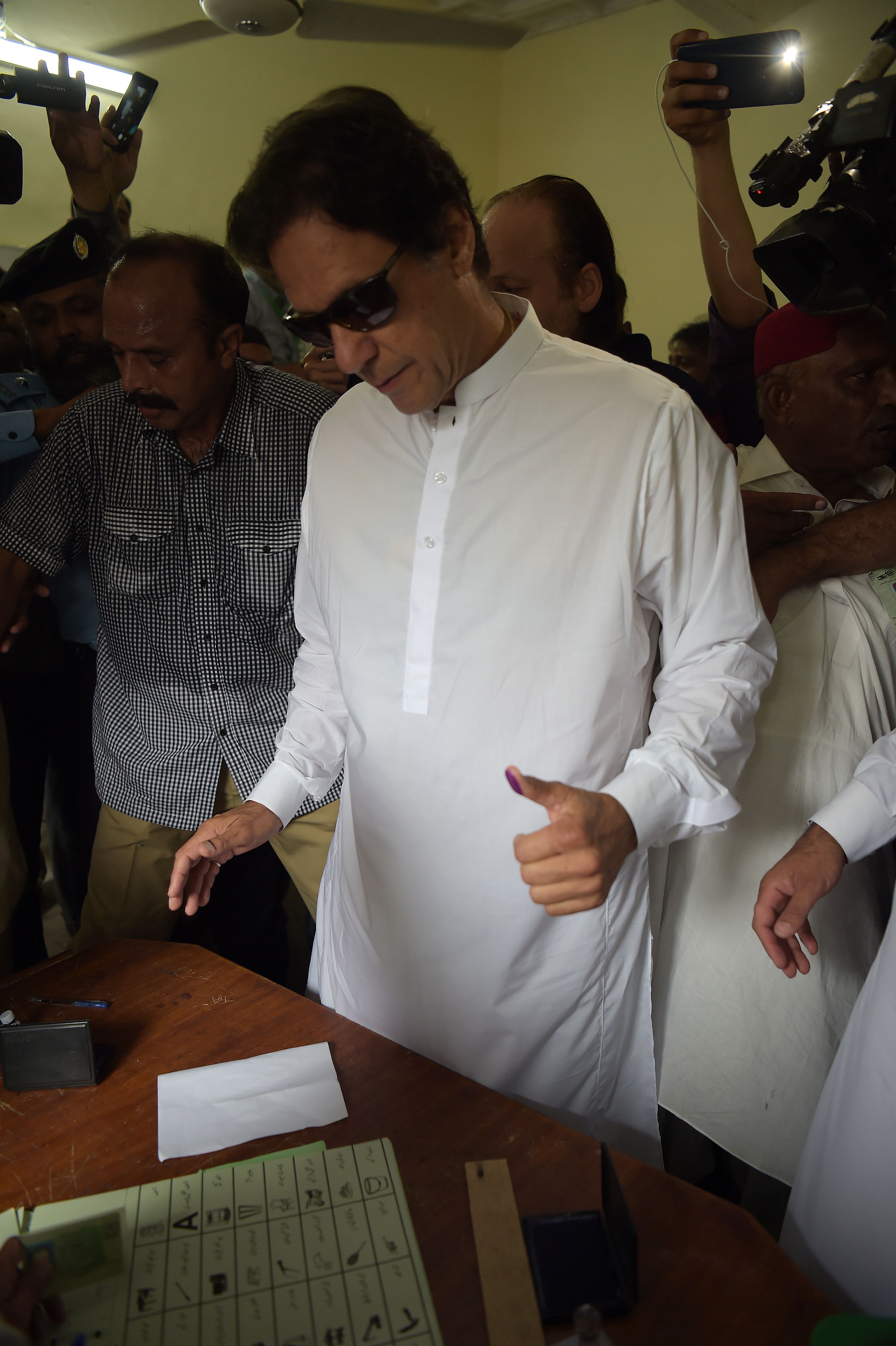 Instead of going behind the voting screen to cast his vote in secrecy, Imran was seen publicly stamping the ballot paper on the table with TV cameras filming him. Neither the presiding officer nor other polling staff objected to the violation.