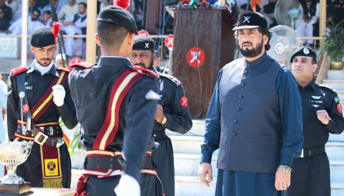 The minister was addressing an FC passing out parade in Shabqadar. Photo: Geo News