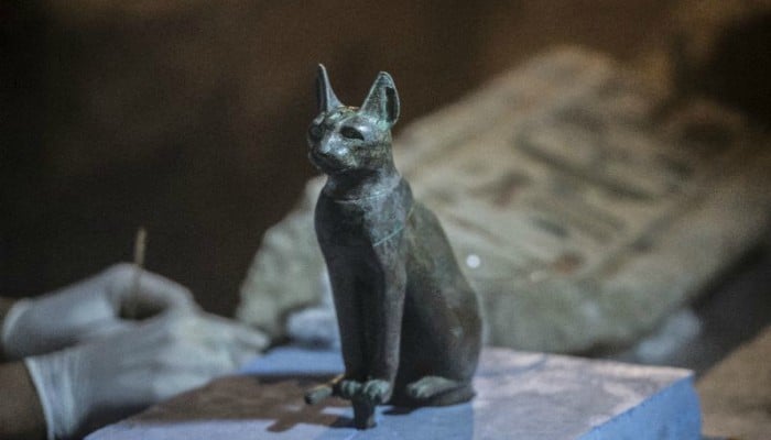 Dozens of cat mummies were also unearthed along with 100 wooden, gilded statues of cats and one in bronze dedicated to the cat goddess Bastet.