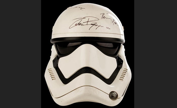 A pair of droid C-3PO’s hands used in “Return of the Jedi” carries a pre-sale estimate of $40,000 - $60,000, while a Stormtrooper helmet used in the 2015 movie “Star Wars: The Force Awakens” and signed by the main cast members carries an estimate of $80,000 - $120,000.