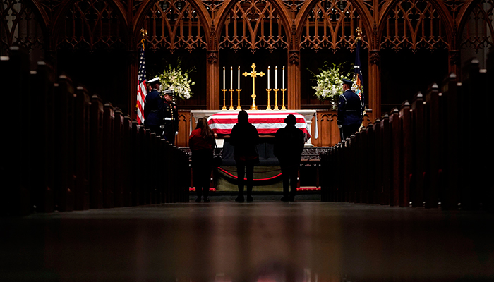 The president did not attend a service that was similar in scale at the cathedral for Republican Senator John McCain, who died earlier this year, and had to be talked into keeping the American flag at half-staff over the White House.