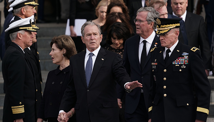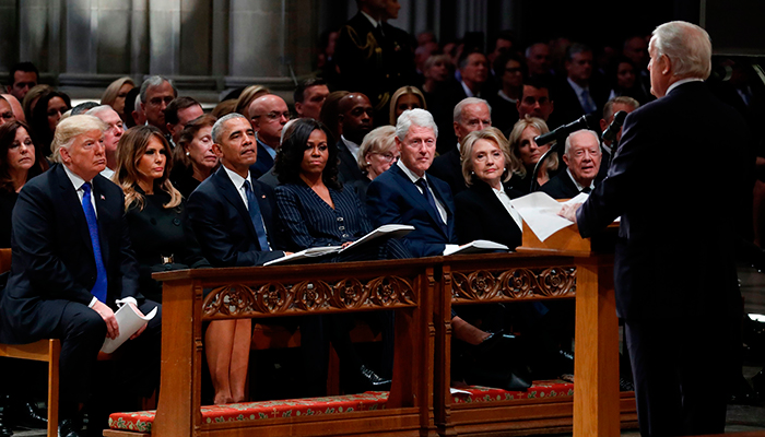 The fact that he came, however, and was welcomed by the Bush family, with whom he also has sparred, provided a glimpse of bipartisanship and political civility that many feel are lacking since Trump took office in January 2017.