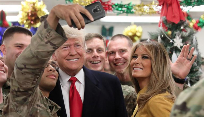 AL ASAD AIR BASE: US President Donald Trump made a surprise Christmas visit to US troops in Iraq on Wednesday, his first trip to a conflict zone nearly two years into his presidency and days after announcing a pullout of American troops from neighbouring Syria.