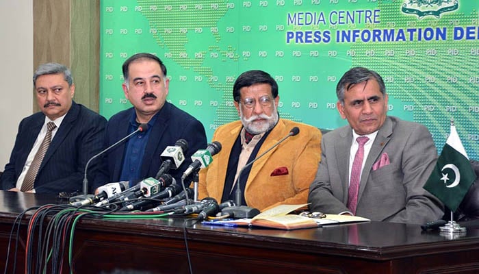 Minister for Aviation Muhammad Mian Soomro, Special Assistant to PM on Media Affairs Iftikhar Durrani and Secretary Aviation Division Shahrukh Nusrat were also present at the presser.