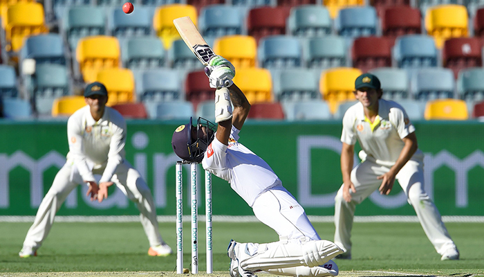 Resuming at 17-1 Saturday, Sri Lanka’s hopes of saving the match were dealt a heavy blow when Dinesh Chandimal and Kusal Mendis fell in consecutive overs from Cummins at the start of the day.