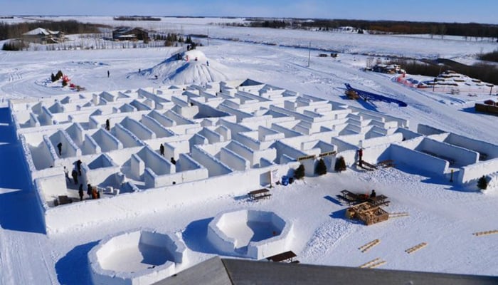 A-maze-ing: a snow labyrinth in the frigid, windswept prairies of Western Canada has broken the record for the world´s biggest.