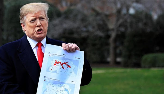 A bullish US President Donald Trump predicted Wednesday that the Daesh group would be wiped off the map within hours, as he unfurled printouts showing the militant group´s shrinking presence in Iraq and Syria.