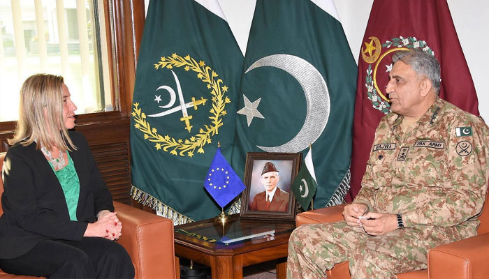 RAWALPINDI: EU Representative for Foreign Affairs Federica Mogherini on Monday called on Chief of Army Staff (COAS) General Qamar Javed Bajwa, and discussed with him affairs of mutual interest and regional security situation.