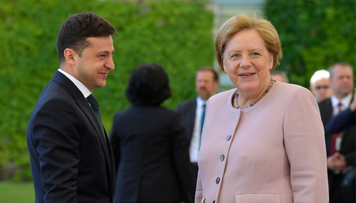 Zelensky, 41, made light of Merkel's uneasy spell, joking that he would have come to her rescue if necessary. "She was standing next to me and completely safe," he said.