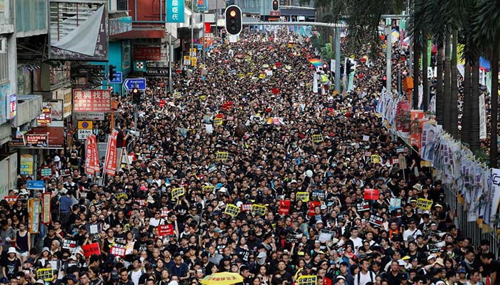 Tens of thousands marched in temperatures of around 33 degrees Celsius (91.4°F) from Victoria Park in an annual rally that organizers hoped would get a boost from the anger over the extradition bill.