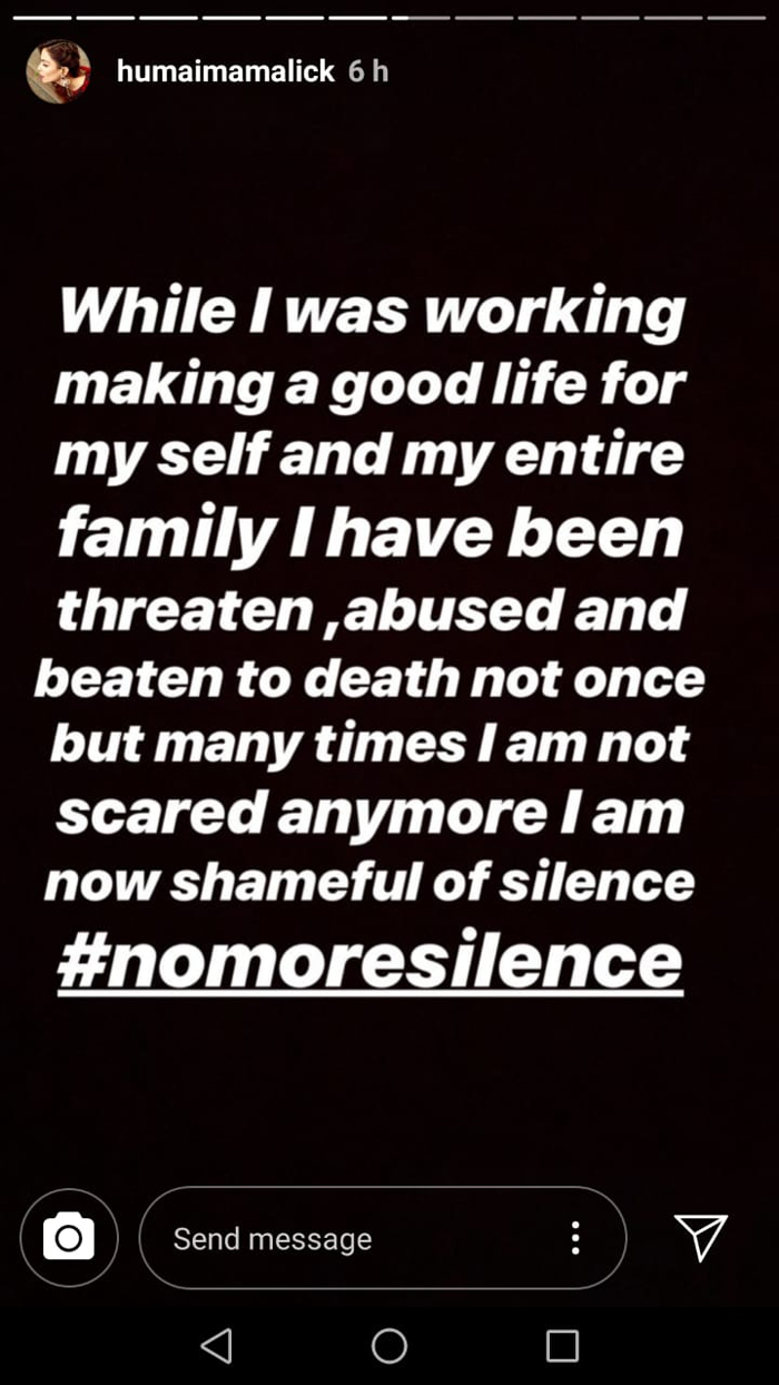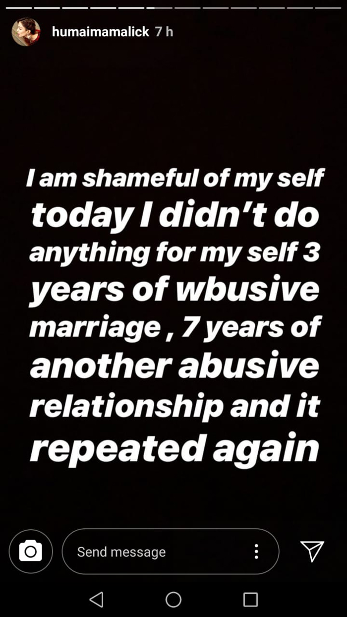 KARACHI: Actress Humaima Malick on Wednesday opened up being subjected to abuse and beaten in more than one relationship, amid a much-talked-about conversation on #MeToo and domestic violence that started again after actor Mohsin Abbas Haider's wife, Fatema Sohail, accused him of cheating and abuse.