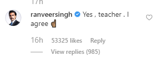 Ranveer stepped in once again as he threw some more banter saying: “Yes, teacher . I agree.”