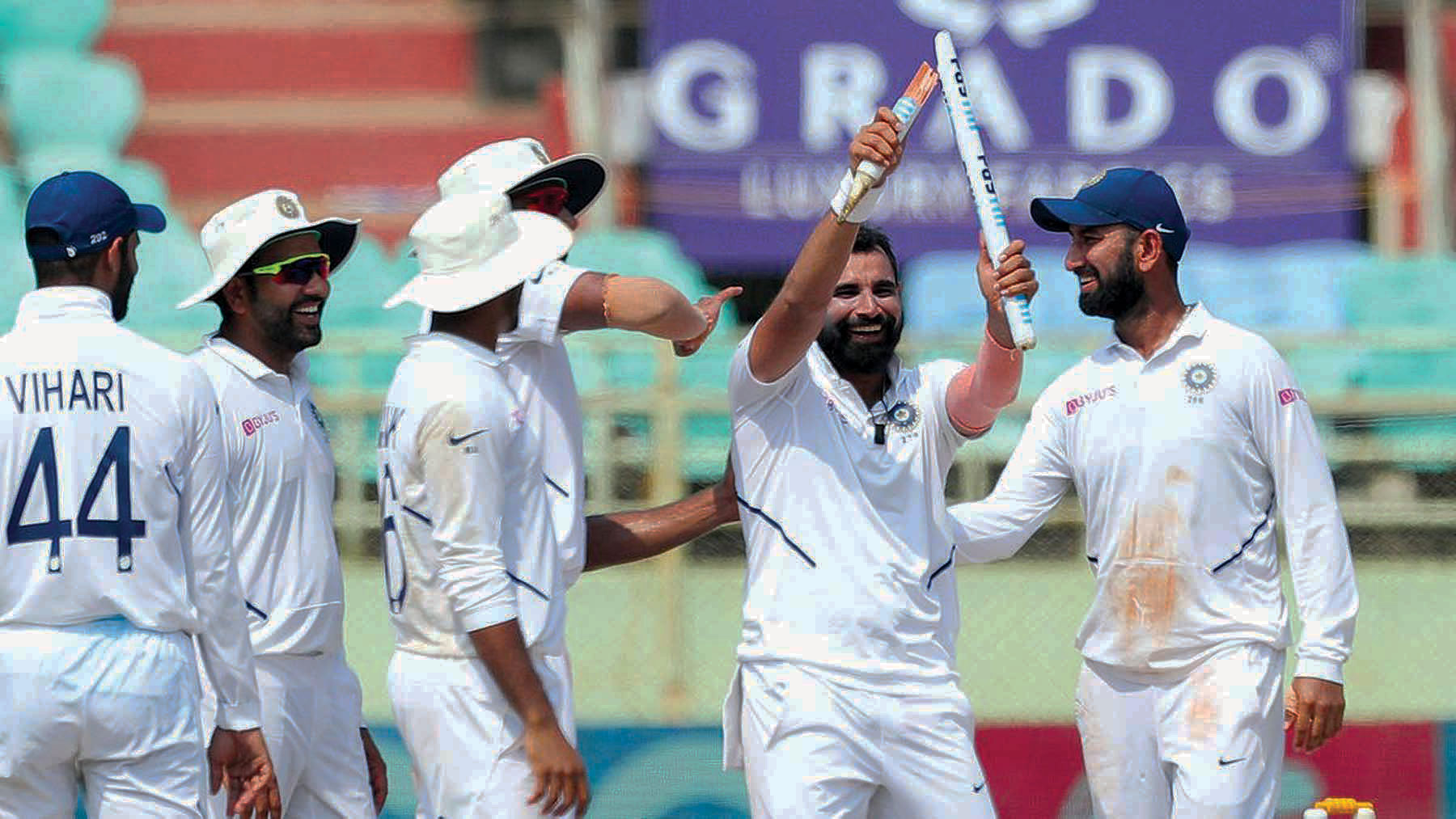 VISAKHAPATNAM: Mohammed Shami and Ravindra Jadeja's nine wickets outplayed South Africa by 203 runs on the final day of the first Test on Sunday.