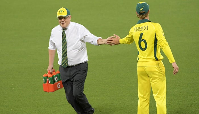 Australian Prime Minister Scott Morrison on Thursday brought out drinks for the Aussie cricket team.